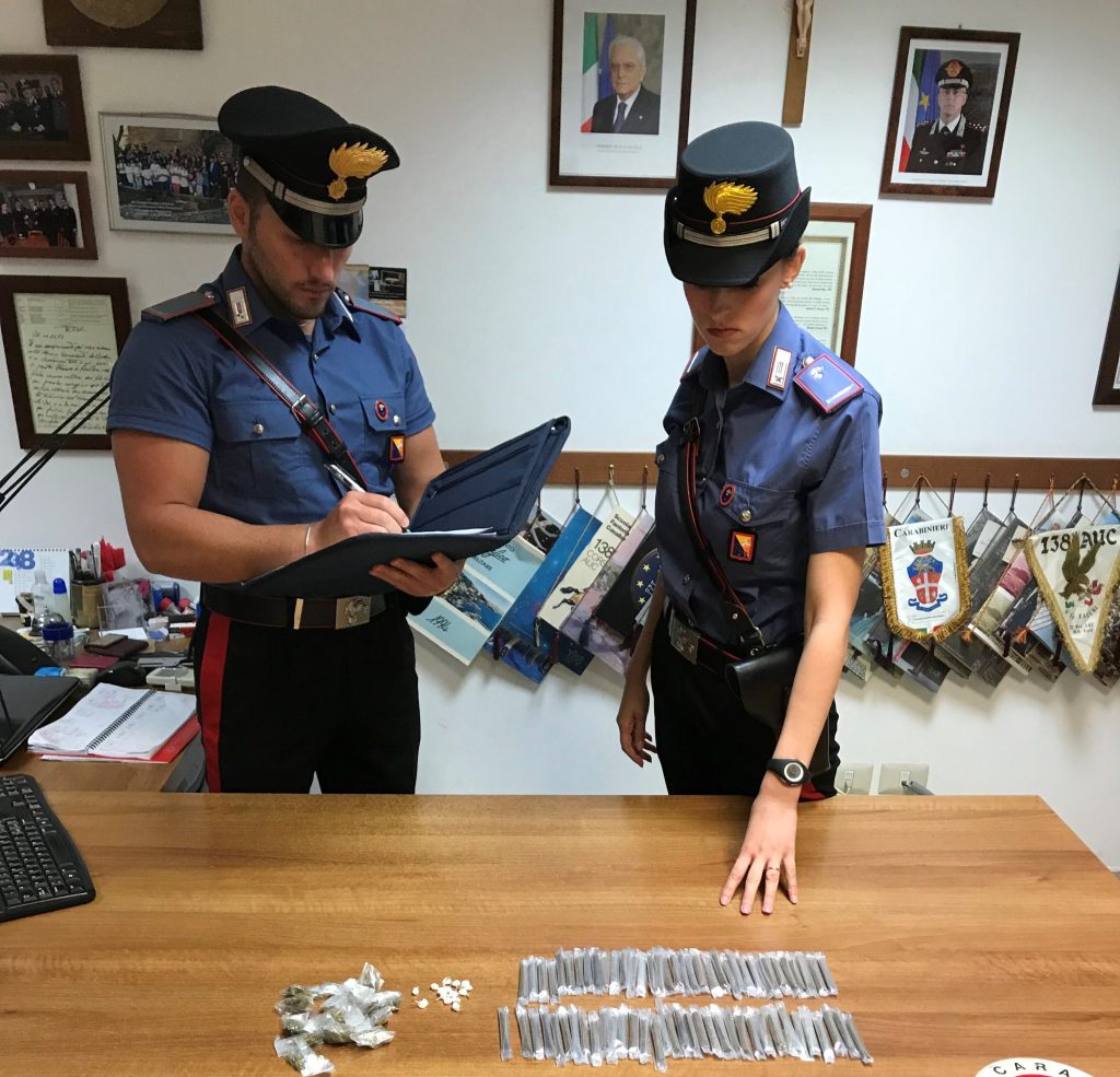 Sulla tettoia di una pensilina, sono stati trovati 69 dosi di hashish per un peso di 130 grammi, 14 dosi di marijuana per un peso di 13 grammi e 15 dosi di cocaina per un peso di 21 grammi.