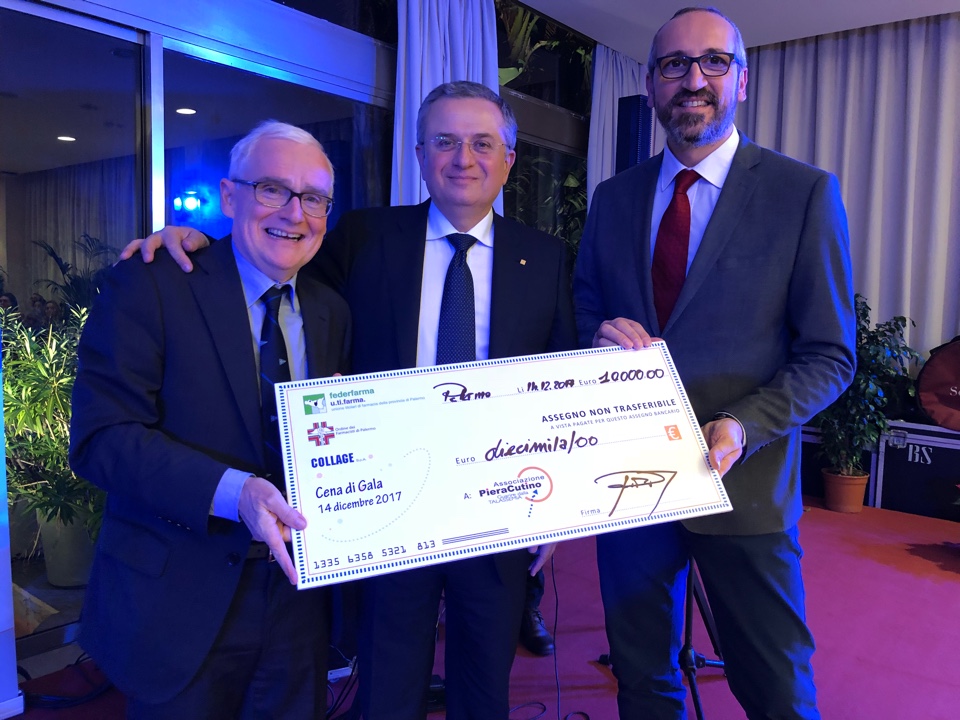 La serata di beneficenza organizzata ieri da Federfarma Palermo e dall’Ordine dei farmacisti di Palermo ha permesso di raccogliere 10mila euro, consegnati dal presidente di Federfarma Palermo-Utifarma, Roberto Tobia, al direttore dell’Associazione “Piera Cutino-Guarire dalla talassemia”, Sergio Mangano, e al prof. Aurelio Maggio, direttore del dipartimento di Ematologia e Oncologia dell’ospedale “Cervello” di Palermo.