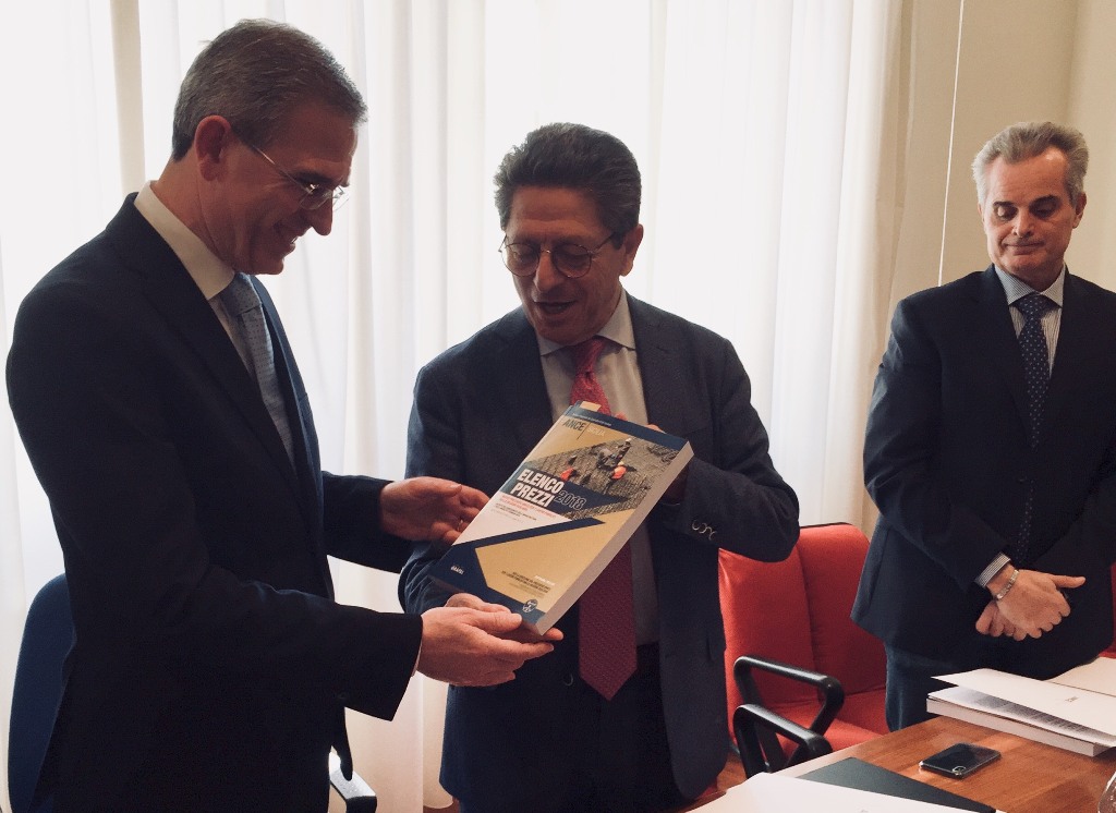 Il presidente di Ance Sicilia, Santo Cutrone, ha ringraziato l’assessore Falcone per avere condiviso le sollecitazioni della categoria e ha confermato la disponibilità dei costruttori edili a proseguire il confronto sia sul piano della semplificazione delle procedure di spesa dei fondi per opere pubbliche e dei pagamenti alle imprese, sia su quello dei correttivi all’impianto normativo vigente. Cutrone ha anche ringraziato Falcone per la rapidità con cui ha approvato il nuovo Prezziario regionale e gli ha fatto omaggio proprio del nuovo Prezziario pubblicato da Ance Sicilia.