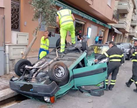 Incidente a Villabate (Palermo) in via Giulio Cesare. Una giovane a bordo di una Fiat Panda, ha perso il controllo della vettura che si è capottata.