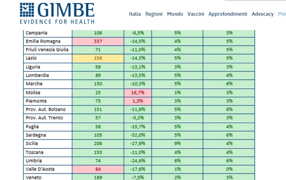 In Sicilia c’è un netto calo dei contagi pari al -27,19%, uno dei più alti in Italia. Ma allo stesso modo resta alto il numero dei positivi ogni 100 mila abitanti che si attesta su 206, uno dei più elevati a livello nazionale. Alto anche il numero dei posti letto occupati in area medica che si attesta al 9%, il secondo più alto in Italia soltanto dopo la Campania che si ferma al 10. “Altino” anche il numero dei posti letto occupati in terapia intensiva ma questa volta la Sicilia si piazza sostanzialmente a metà classifica: siamo sul 4%.