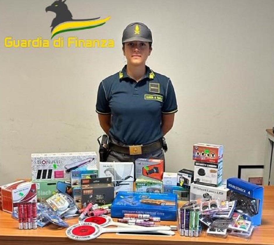 Nel dettaglio, sono stati sottoposti a sequestro prodotti per la persona: orecchini, rasoi, profumi, decorazioni per unghia, detergenti per trucco, fermagli per capelli, paraorecchie, pennelli per ombretti, braccialetti e altro ancora. Ancora materiale casalingo come feltrini per mobili, ganci e carrucole per tende e materiale elettrico come lampade, cavi elettrici, adattatori per antenna, prese, morsetti, piastre per capelli, massanger, accendisigari, radio control, connettori elettrici, black box dvr, radio, torce, joystick, videocamere di sorveglianza. Tra questi anche sigarette elettroniche usa e getta, contenenti percentuali di nicotina al 5%, sprovvisti del codice univoco di identificazione.