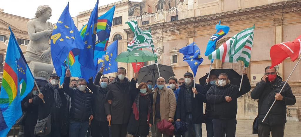 Si è tenuto questa mattina a piazza Pretoria, nel rispetto delle norme anti-Covid, il sit-in delle organizzazioni sindacali del Comune di Palermo per protestare contro le scelte dell’amministrazione Orlando contenute nel bilancio di previsione 2020 in discussione in consiglio comunale.