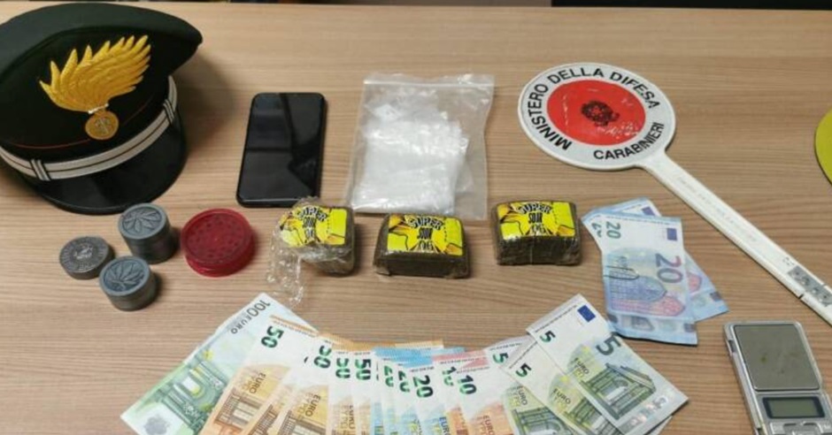 I militari hanno colto in flagranza di reato il giovane presunto pusher e, durante le operazioni di ricerca nella abitazione, hanno trovato 70 grammi di hashish nonché 380 euro, di cui 350 in banconote contraffatte.