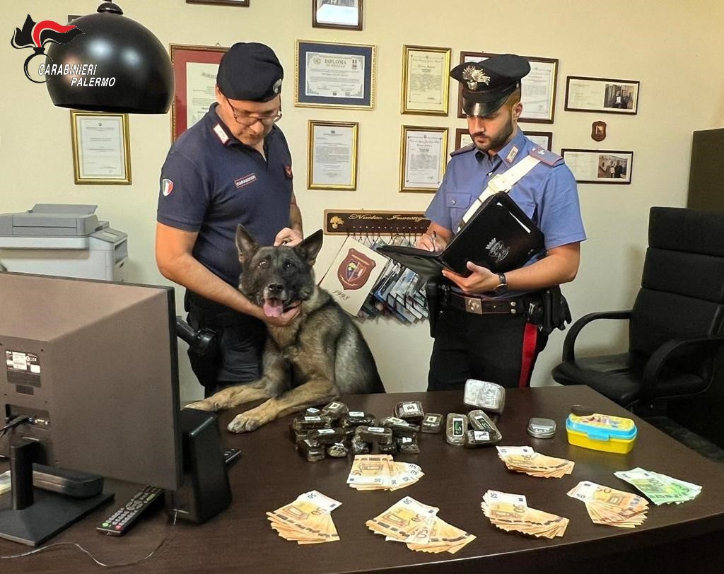 Nel corso della perquisizione in casa di Giuseppe Taormina, 30 anni e Fortunata Accetta di 27 anni sotto il letto matrimoniale sono stati trovati 3 chili e mezzo di hashish e 6.650 euro in contanti.