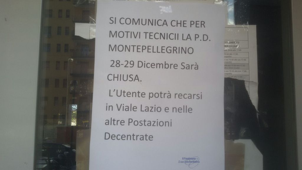 Per tre giorni consecutivi, il 27, il 28 e il 29 dicembre, lo sportello anagrafe della postazione decentrata di via Fileti è rimasto chiuso a causa del personale in ferie o in congedo per malattia.