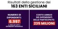 In Sicilia sono 163 le aziende pubbliche controllate dalla Regione, molte hanno bilanci in passivo: si tratta di 71 enti,13 società partecipate, 24 organismi strumentali e 55 in liquidazione. In pancia hanno in totale 6.997 dipendenti, pari a circa la metà dei lavoratori diretti regionali. Il solo personale delle 13 partecipate costa 235 milioni di euro, per il resto è difficile quantificare i costi. È quanto emerge dall’indagine “Il lato oscuro della Regione, cifre e dati inediti sugli sprechi delle partecipate e degli enti siciliani”, condotta da Sunseri.