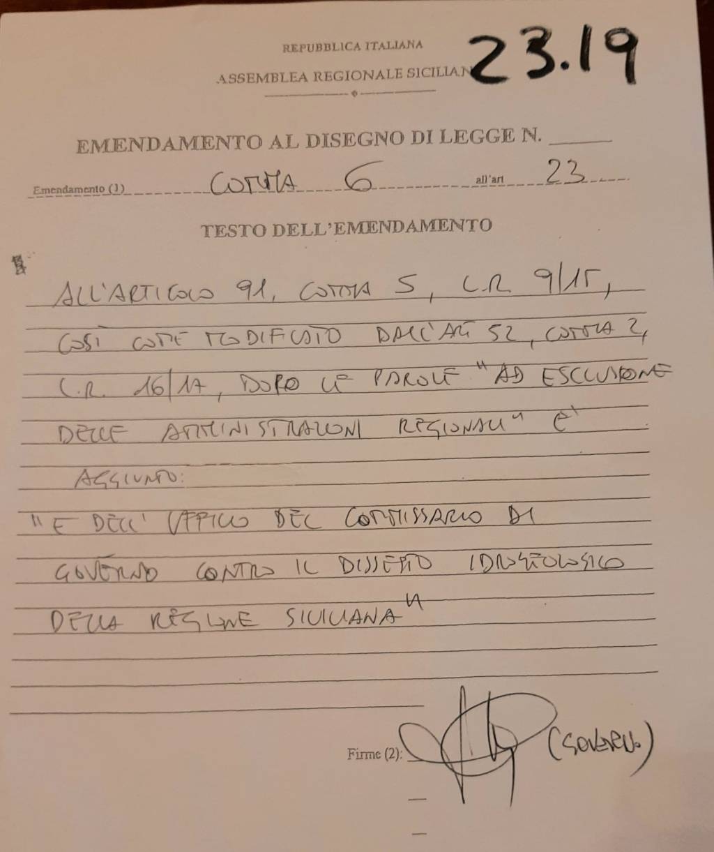 Si tratta di un emendamento al comma 6 dell’articolo 23 ultimo ad essere approvato in serata in aula.