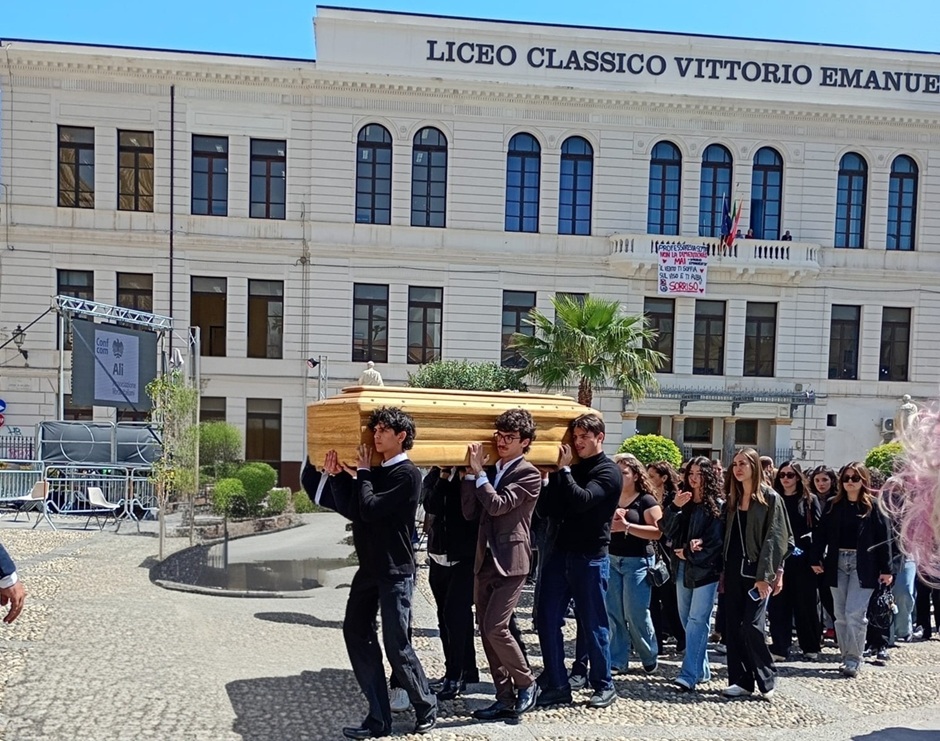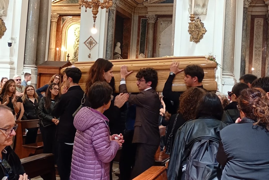 Alla fine della celebrazione gli studenti in corteo hanno portato la salma della docente nella scuola che ha visto Giovanna Somma prima studentessa e poi per anni insegnante.