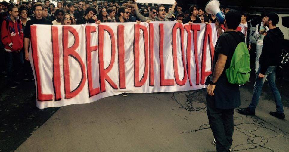 Dietro uno striscione sul quale si legge “Liberi di lottare”, gli studenti palermitani hanno rivendicato la loro libertà di manifestare il proprio dissenso, poiché, in quanto giovani nati e cresciuti negli anni della crisi, sono testimoni oculari di un progressivo smantellamento di tutti quelli che fino a qualche tempo fa venivano in maniera indiscutibile definiti diritti fondamentali.