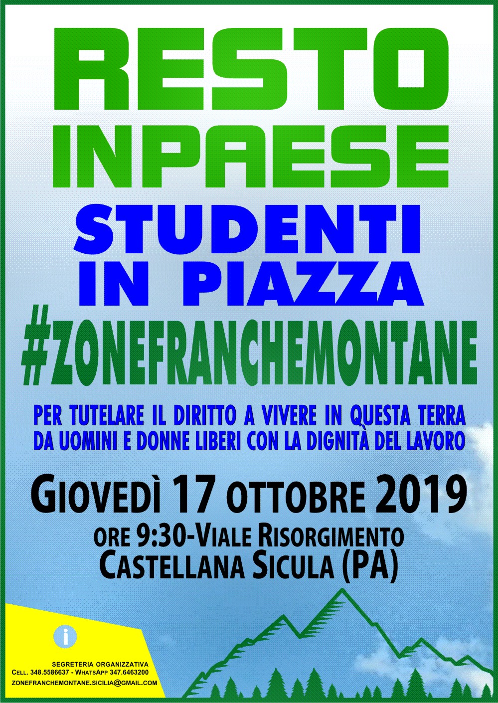 Anche gli studenti scenderanno in piazza, al grido di “Restiamo in paese”, per chiedere l’istituzione delle Zone Franche Montane (ZFM), “Per tutelare il diritto a vivere in questa terra – si legge nella locandina dell’iniziativa – da uomini e donne liberi con la dignità del lavoro”.