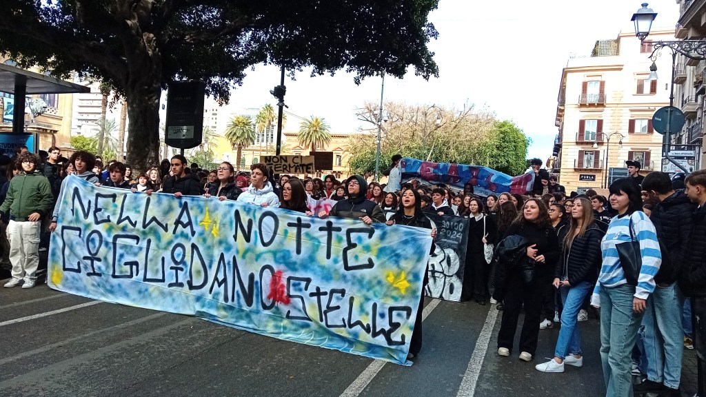 Tanti gli slogan e i cartelli esposti contro la leader di Fratelli d’Italia e il suo esecutivo. Sono molti inoltre i messaggi che gli studenti hanno rivolto al conflitto in Palestina, chiedendo un immediato cessate il fuoco. “Si tende ad evitare che le persone diano voce al proprio pensiero – commenta Giuseppe Amato -. Non ci va bene. Siamo contro tutto quello che può dare alla nostra generazione un segno sbagliato per il nostro futuro”.