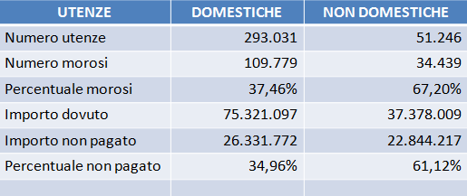 In media il 70% delle imprese non ha pagato la Tari e 2 cittadini su 4. Complessivamente non sono stati pagati 3,6 milioni di euro (slide 16)
