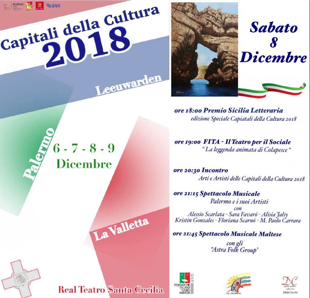 Significativo riconoscimento per il capitolo siciliano di “Fondamenta – Un rete di giovani per il sociale”, progetto della Federazione Italiana Teatro Amatori (Fita) che dal 21 al 24 novembre scorsi si è svolto con successo a Palermo, in stretta collaborazione con il Comune: il progetto parteciperà infatti alla manifestazione di chiusura dell’evento “Capitali della Cultura 2018”, che da giovedì 6 a sabato 8 dicembre coinvolgerà rappresentanti anche de La Valletta e di Leeuwarden.