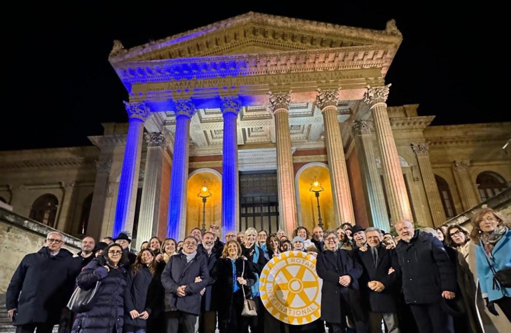 Per una notte le luci blu e giallo oro hanno avvolto il Teatro Massimo, trasformando il monumento simbolo della città in un segno concreto dei valori e della storia del Rotary.
