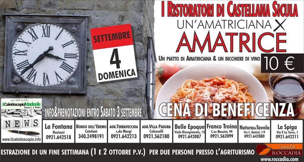 I ristoratori di Castellana Sicula, in collaborazione con la redazione del quotidiano on line “Il Caleidoscopio delle Madonie, Report & News”, hanno prontamente accettato la proposta di adoperarsi a favore della comunità di Amatrice proponendo agli avventori un piatto di pasta all’amatriciana ed un buon bicchiere di vino al costo di 10 euro a persona.