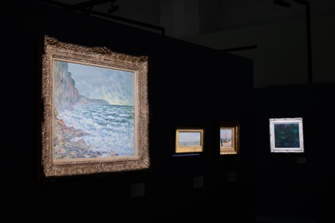 Sono esposte poco meno di 100 opere, per la precisione 97, di 45 artisti appartenenti alla corrente impressionista e alla modalità di pittura en plein air. Ad accogliere i visitatori è una galleria di dipinti che celebrano le falesie, le spiagge e l’estuario della Senna a Le Havre, animati da una popolazione avvezza al mare e ai paesaggi della Normandia. In primo piano spicca l’opera di Claude Monet “Il mare a Fécamp”, in cui uno sperone roccioso e la forza dell’oceano sono resi attraverso pennellate rapide e brevi, realizzate con la tecnica chiaro su chiaro e senza la miscela dei colori.