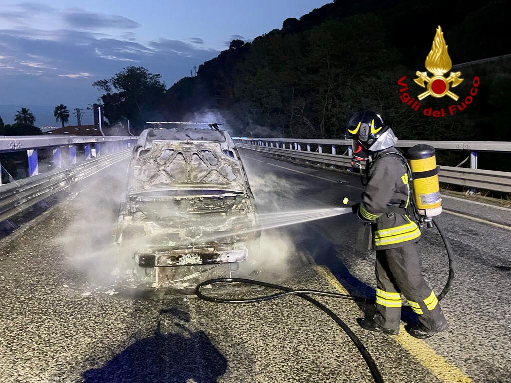 Le fiamme hanno avvolto completamente la vettura, distruggendo ogni sua parte. La squadra di pompieri del distaccamento Nord e supportata da una autobotte proveniente dalla sede Centrale è riuscita a domare le fiamme estinguendo totalmente il rogo. Sul posto anche la polizia stradale e personale Cas. Le cause dell’incendio sono da attribuire a cause di natura elettrica. Non risultano feriti. I vigili del fuoco, dopo aver bonificato e messo in sicurezza tutta l’area coinvolta, hanno fatto rientro in sede intorno alle 7.