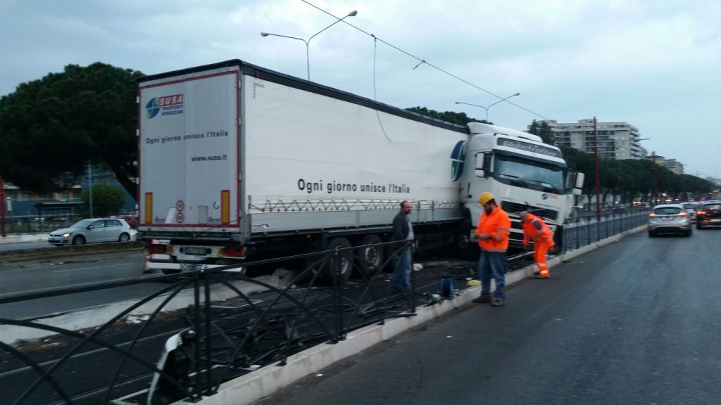 Barriere sfondate e tir di traverso sui binari del tram in viale Regione siciliana. L’incidente è avvenuto nelle prime ore del giorno ed ha causato la sospensione di tutte le corse della linea 4 del tram di Palermo, quella che parte dalla stazione Notarbartolo per attraversare buona parte della circonvallazione.