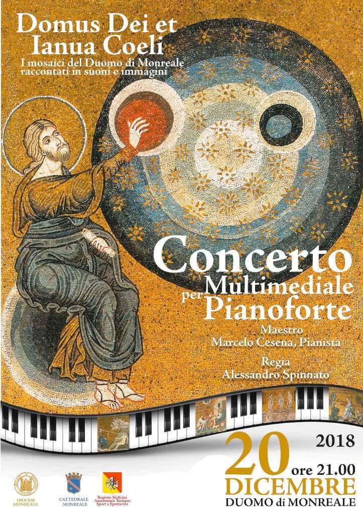 In una cornice unica si svolgerà il concerto multimediale per pianoforte intitolato Domus Dei et Ianua Coeli, ispirato ai mosaici del Duomo di Monreale. L’appuntamento è per il 20 dicembre alle ore 21.