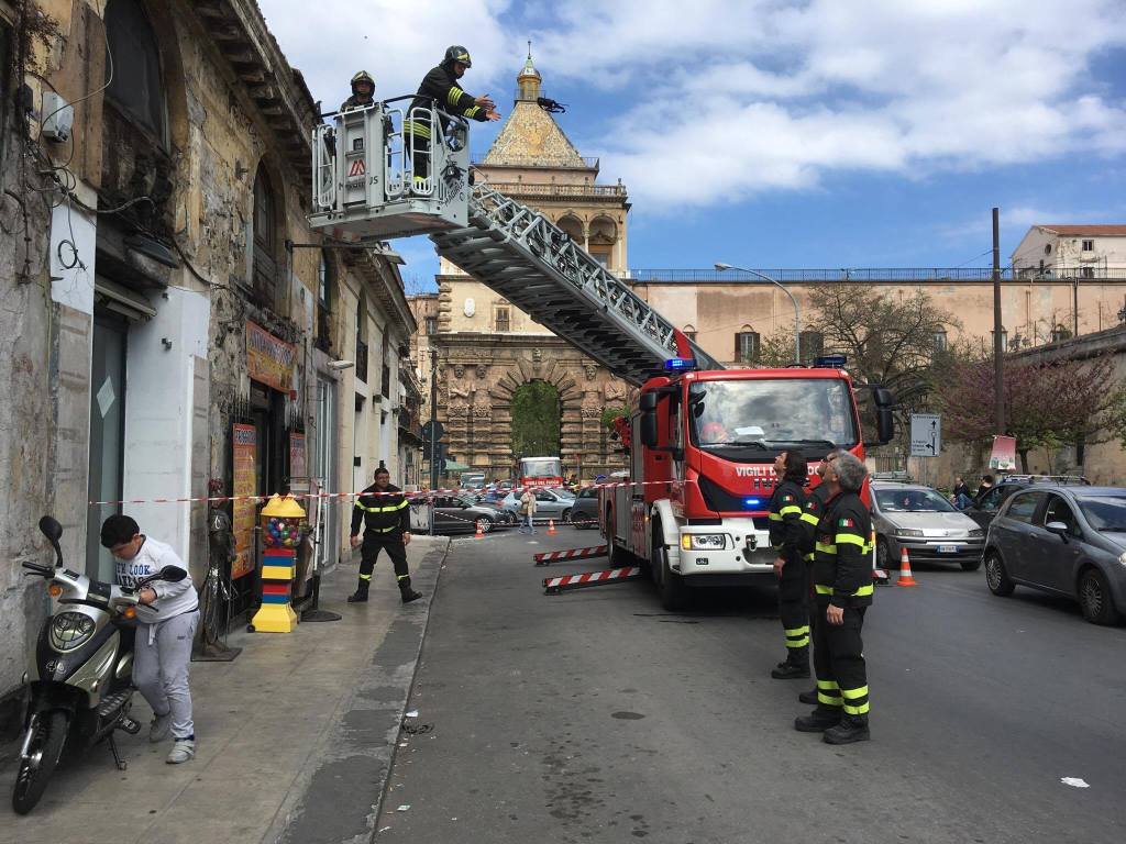 Un pezzo di cornicione si è staccato dall’edificio della vecchia stazione di posta che si trova in corso Calatafimi a Palermo e ha rischiato di colpire una turista che stava passando nei pressi. Sono intervenuti i vigili urbani che hanno chiesto l’intervento dei pompieri e degli uomini della Rap. Nella zona è intervenuta anche la Protezione Civile. I pompieri hanno messo in sicurezza l’immobile e le parti del prospetto che rischiavano di crollare. I vigili urbani e i tecnici della Protezione civile stanno valutando se sequestrare l’immobile. Nel tratto tra il civico 17 e 31 ci sono una friggitoria, un negozio di abbigliamento e un esercizio commerciale che vende sigarette elettroniche.