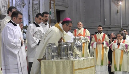 Durante la solenne liturgia saranno benedetti gli oli santi grazie alla donazione di 27 comunità parrocchiali e associazioni compresa la “Casa dei giovani” che l’ha prodotto nelle terre confiscate alla mafia. L’olio dei catecumeni, col quale si ungono sul petto i battezzandi prima del lavacro battesimale per infondere la forza, segno della lotta contro il male; l’olio degli infermi col quale si ungono sulla fronte e sulle mani i cristiani seriamente ammalati per infondere forza e sollievo nella malattia; l’olio del Crisma, olio misto a balsamo, con cui vengono unti sul capo i battezzati, sulla fronte i cresimati, sulle mani i sacerdoti, sul capo i vescovi come segno della consacrazione dello Spirito Santo. Nella nostra Arcidiocesi vige da tempo immemorabile la tradizione che l’olio viene donato da alcune parrocchie dell’Arcidiocesi.