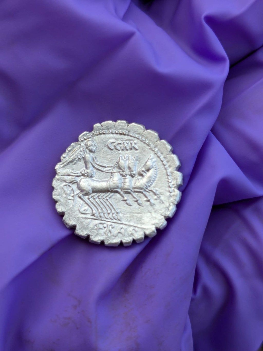 Si tratta di alcune monete in argento di età Repubblicana coniate a Roma, denari la cui datazione fissata tra il 94 e 74 a.C. è identica a quella del primo ritrovamento. Secondo quanto sostiene l’archeologo, alcune monete sono apparse nella terra smossa dopo le piogge, le altre sono state ritrovate sotto a un masso proseguendo negli scavi e sono già state ripulite e inventariate.