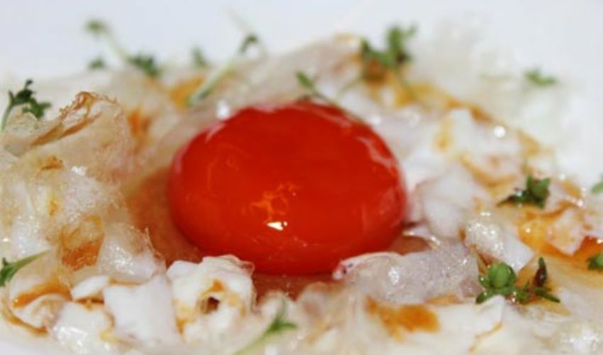 Nonostante gli ingredienti semplici, si tratta di una cucina raffinata, quella che solo un ristorante stellato può offrire. Una volta pronto, il tuorlo può essere servito a piacere con asparagi bianchi e mandorle o con una fonduta di parmigiano.