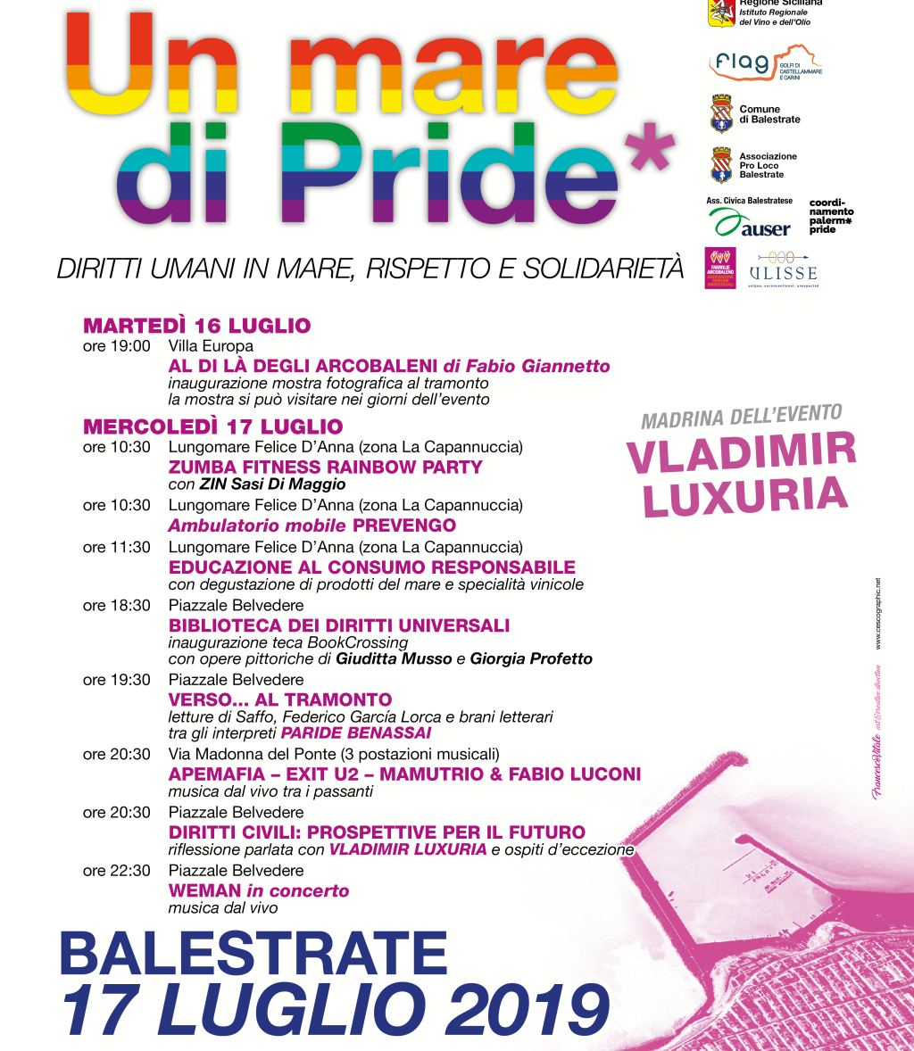 Ecco perché Balestrate, Comune del Palermitano che per la prima volta “sdogana” un’iniziativa di questo genere in provincia, sarà il centro protagonista di “Un Mare di Pride”, manifestazione che si svolgerà mercoledì 17 luglio con inaugurazione martedì 16.
