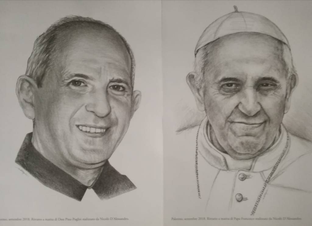 Intanto, questa mattina a Villa Niscemi, è stato presentato “Papa Francesco sulle orme di Don Puglisi”, il numero speciale della rivista “Poliedro” (mensile dell’Arcidiocesi di Palermo) interamente dedicato alla visita del Santo Padre e con una ampia riflessione a più voci, sulla figura di don Pino Puglisi. Una eccezionale iniziativa editoriale, curata graficamente da Nicolò D’Alessandro che ha realizzato i ritratti allegati al mensile (nella foto) di Papa Francesco e Don Puglisi.