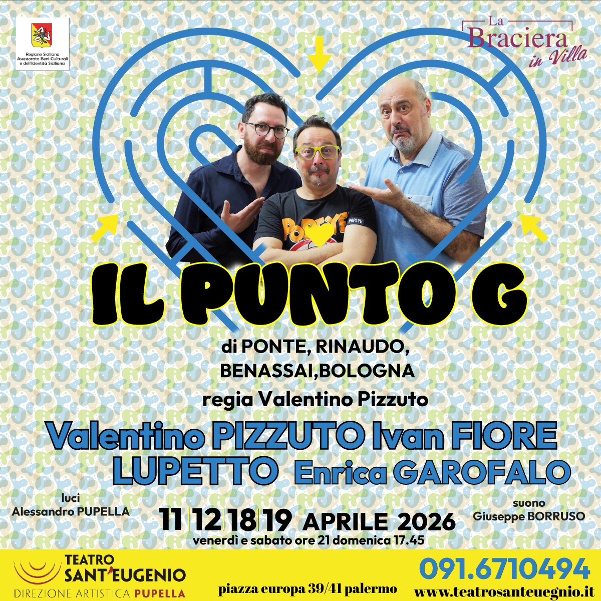 Al teatro Sant’Eugenio – Direzione artistica Pupella di piazza Europa 39/41 a Palermo prosegue la Stagione 2025-2026 con uno spettacolo tutto da ridere dal titolo “Il punto G”, che andrà in scena sabato 11 e domenica 12 aprile, e poi, sabato 18 e domenica 19 aprile, con inizio, il sabato alle ore 21, mentre, la domenica alle ore 17.45.