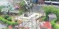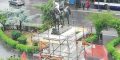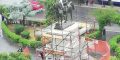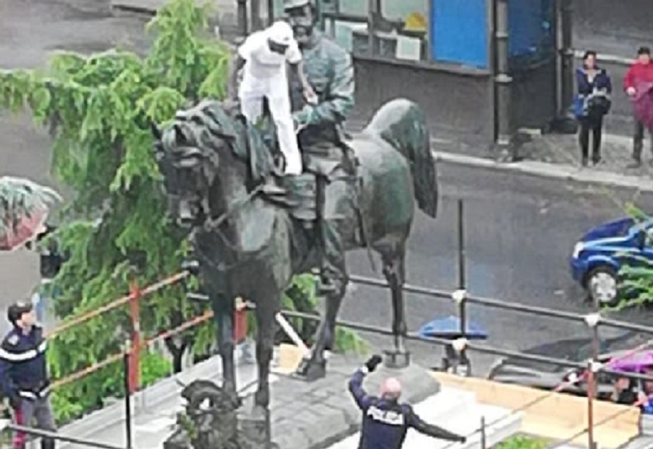 Un uomo è salito sulla statua che raffigura il re Vittorio Emanuele II in piazza Giulio Cesare. L’uomo vestito di bianco è salito sull’impalcatura della statua in ristrutturazione e si è seduto accanto al re d’Italia.