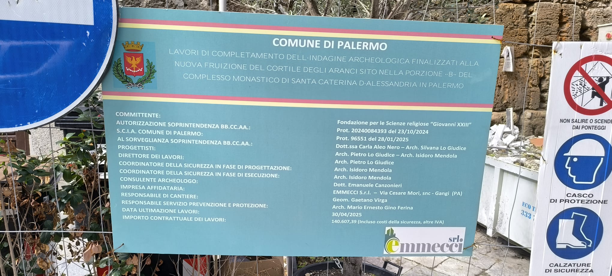 Da gennaio 2025 è stata ufficialmente avviata la fase operativa del progetto di conservazione e valorizzazione del complesso, con un investimento complessivo di 950.000 euro stanziato dal ministero delle infrastrutture e dei trasporti. I lavori, che dureranno fino a dicembre 2025 (!), prevedono il recupero delle superfici decorate, il consolidamento strutturale delle murature e il ripristino delle aree verdi. L’intervento, affidato a ditte specializzate nella conservazione dei beni culturali, mira non solo a salvare il chiostro dal degrado, ma anche a renderlo nuovamente fruibile per eventi culturali, visite guidate e attività didattiche. Guardando lo stato dei lavori ci sembra difficile che le scadenze vengano rispettate onestamente.