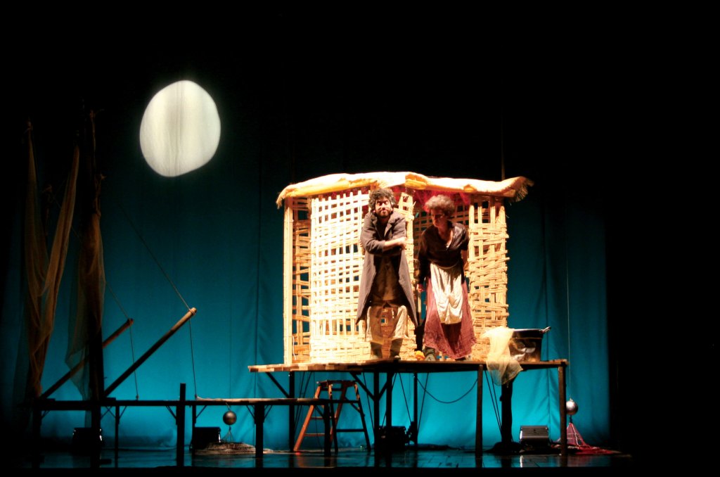 Nello spettacolo per la regia di Enrico Falaschi e con le scenografie e i pupazzi di Federico Biancalani, la fiaba viene raccontata attraverso i ricordi del vecchio pescatore divenuto un viandante: l’uomo è povero ma felice perché, a differenza della vecchia moglie, è capace di accettare la propria condizione apprezzandone gli aspetti positivi.