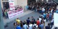 Gli studenti, in segno di protesta, hanno voluto lanciare un chiaro messaggio esponendo due striscioni nei quali si leggeva “Diritto allo studio negato. Test d’ingresso = furto legalizzato” e “Dei nostri soldi ne avete piene le tasche Stop Tasse Collettivo Universitario Autonomo” e creando lì dinanzi un momento di controinformazione.
