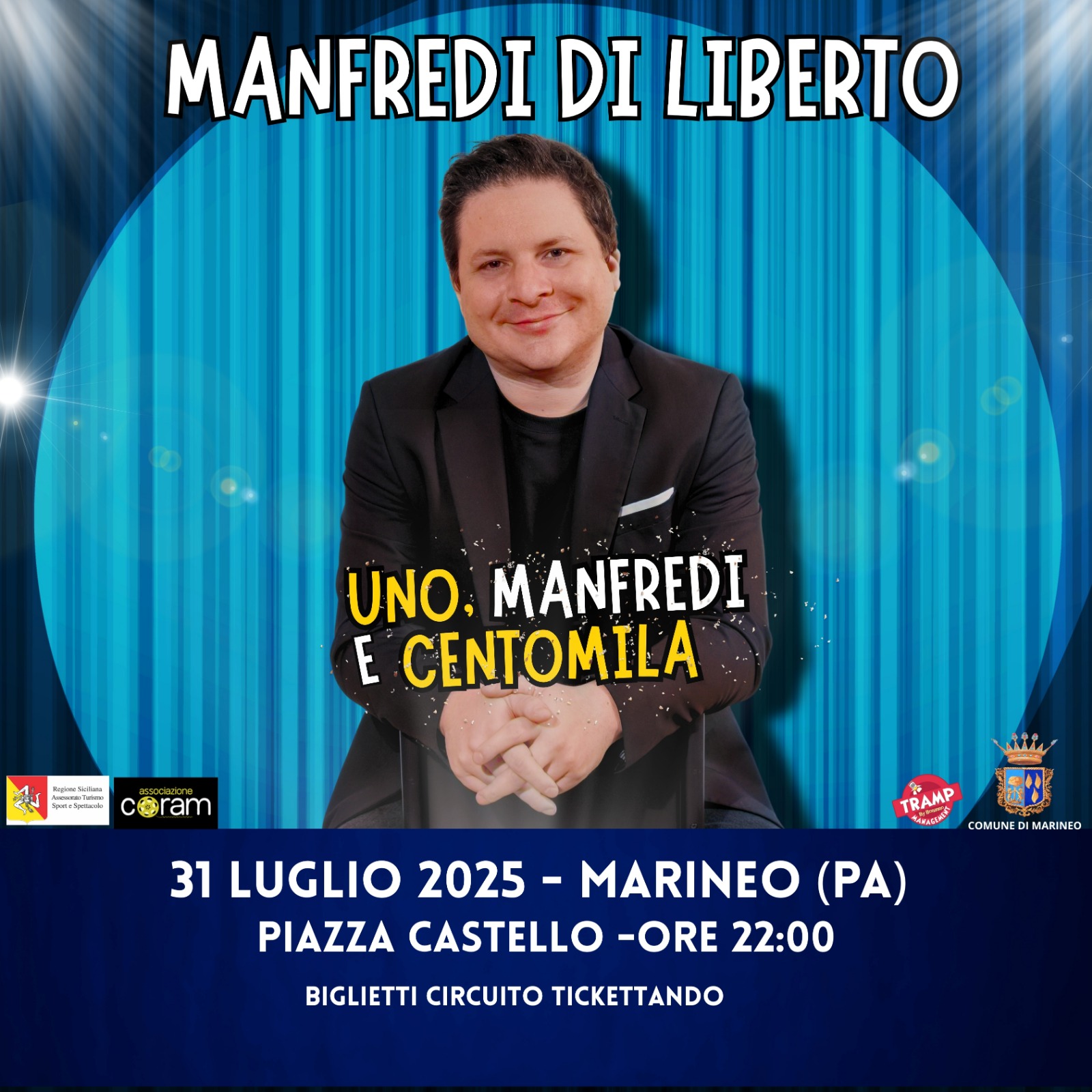 Dopo lo straordinario successo degli appuntamenti di Palermo, Enna, Catania, Trapani, Barcellona Pozzo di Gotto e Ragusa dei mesi scorsi, l’attore e comico palermitano Manfredi Di Liberto torna in scena col suo spettacolo “Uno, Manfredi e Centomila” per altre tappe siciliane, nello specifico, a Marineo, Sciacca e Milazzo.
