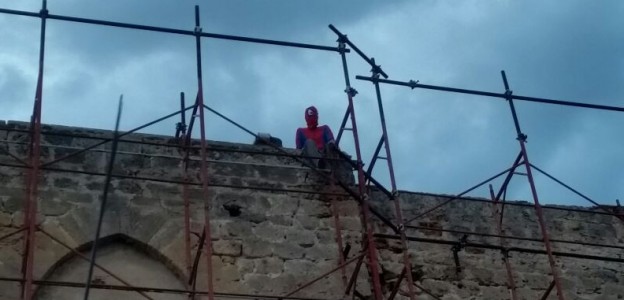 Un uomo vestito da Spiderman si è arrampicato in un ponteggio nella zona di via Libertà nei pressi di piazza Mordini.