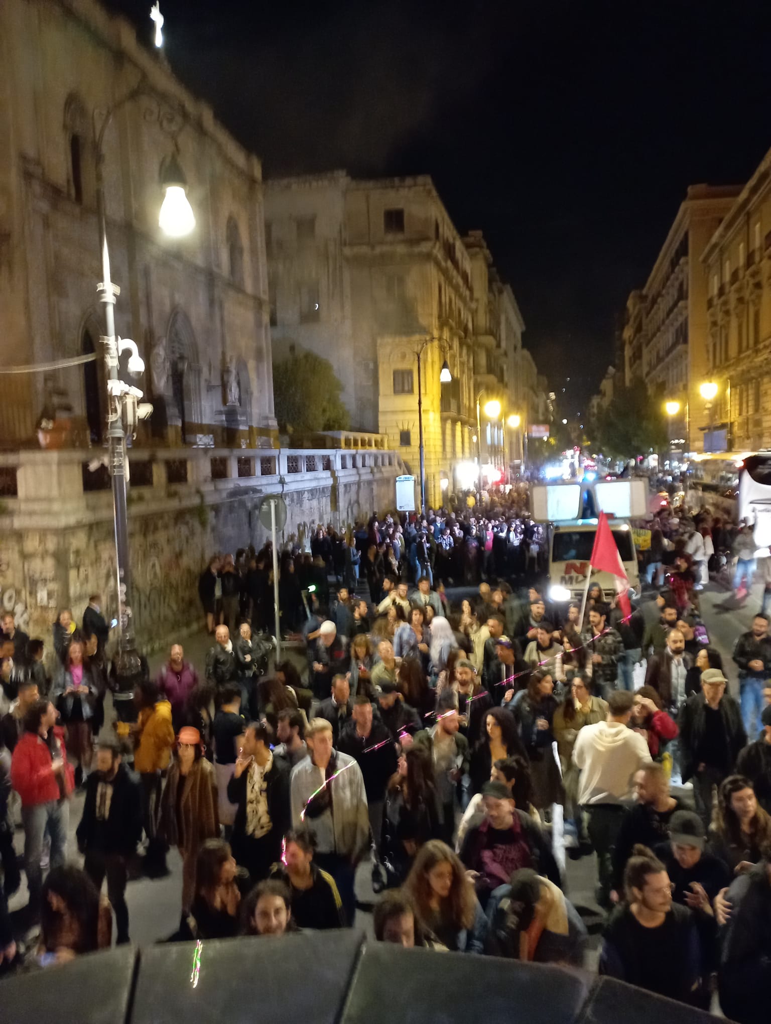 L’iniziativa è stata promossa nelle scorse settimane tramite un fitto tam tam sui social da una rete di organizzazioni palermitane, che ha chiamato a raccolta la città per manifestare “contro il governo Meloni, contro le politiche guerrafondaie e di aumento delle spese militari volute da Crosetto e Salvini, per reclamare il diritto alla casa, al reddito, alla salute di tutti e tutte”.