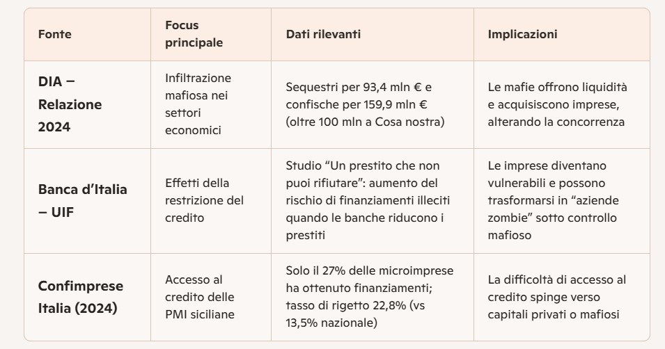 La sfida è chiara: se lo Stato e le banche non troveranno strumenti alternativi e facilmente fruibili per garantire liquidità alle imprese, la mafia continuerà a colmare il vuoto. E ogni euro prestato dalla criminalità sarà un mattone in più nel muro che separa la Sicilia dalla sua libertà economica e sociale”.