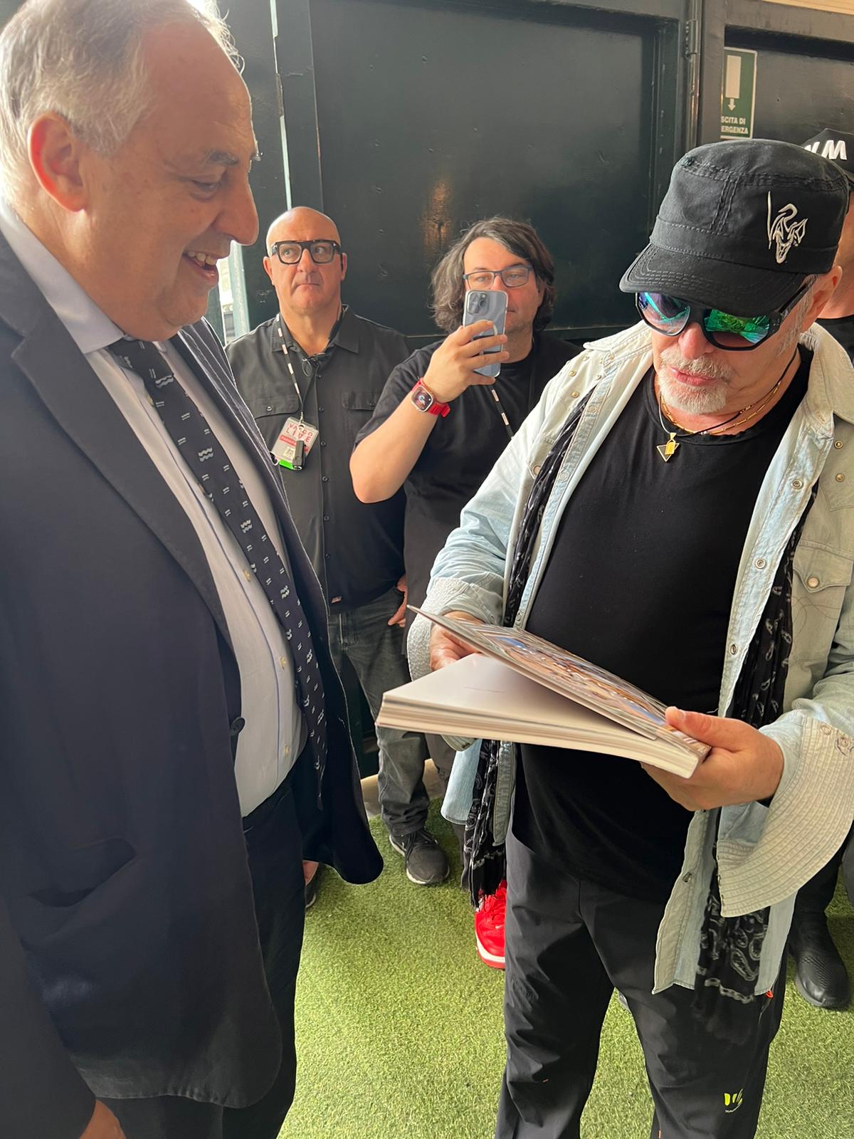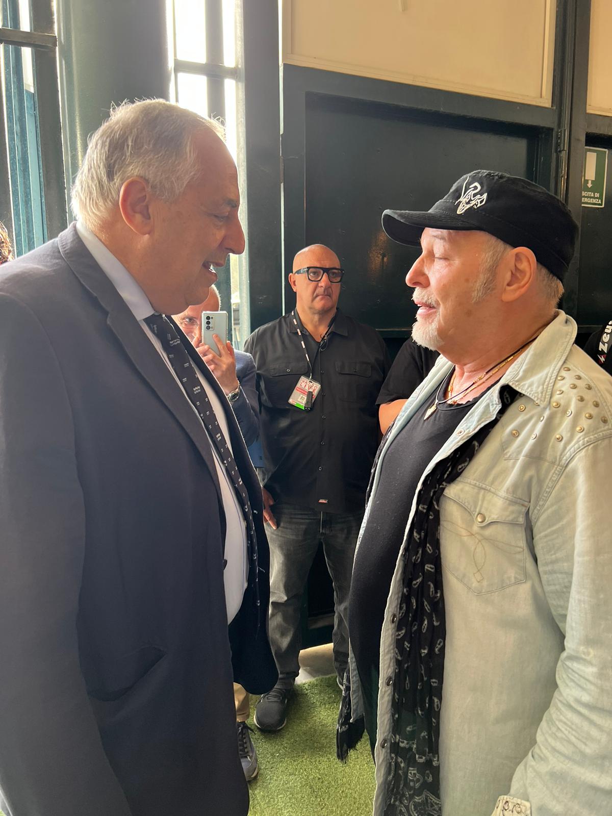 Ma prima di andare via il saluto col sindaco Roberto Lagalla. Un abbraccio che è stato anche l’occasione per raccontare la visione della palermo dei Grandi eventi ” Si è aperta una nuova stagione dei concerti e degli spettacoli in una città che, negli ultimi anni, è stata quasi messa da parte sotto questo punto di vista. Con Vasco Rossi l’impianto di viale del Fante ha riaperto ai concerti dopo 25 anni e adesso l’impegno dell’amministrazione, con la collaborazione del Palermo FC, deve essere rivolto a trovare le soluzioni per rendere il Barbera uno stadio più ospitale. Senza dimenticare gli sforzi che questa amministrazione, insediata da un anno, sta mettendo in campo su altre aree come il Velodromo, i Cantieri culturali della Zisa e, in prospettiva, anche il Palazzetto dello sport per renderle idonee a ospitare spettacoli e grandi artisti” ha detto il sindaco.