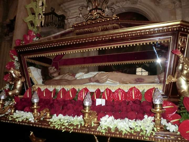 Oggi voglio condividere alcune foto di una delle tante processioni del Venerdì Santo che solitamente si svolgono a Palermo. Sto parlando della processione della chiesa di Santa Maria La Nova, dove la statua dell’Addolorata indossa il manto donato da Franco Franchi il 30 marzo del 1975. Nella stessa chiesa c’è poi il talamo donato a Gesù morto il 9 aprile 1993 sempre da Franco Franchi e la figlia Letizia Benenato”.