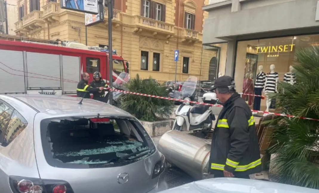 Sfiorata la tragedia a Palermo. Un boiler volato per il vento da un palazzo è caduto davanti ai negozi ed ha sfondato il lunotto di una Mazda parcheggiata nella centralissima via Libertà ad angolo con via XII Gennaio, e ne ha danneggiato un’altra.