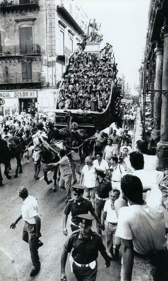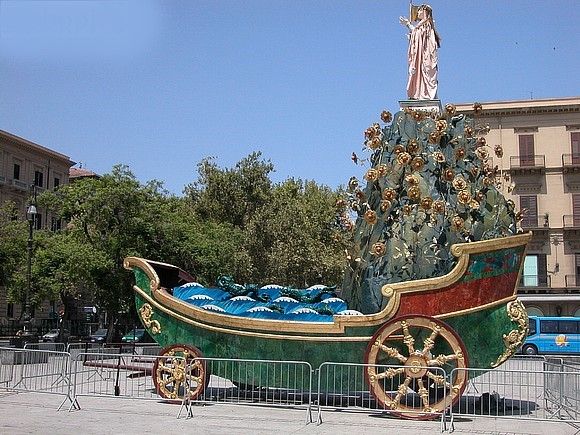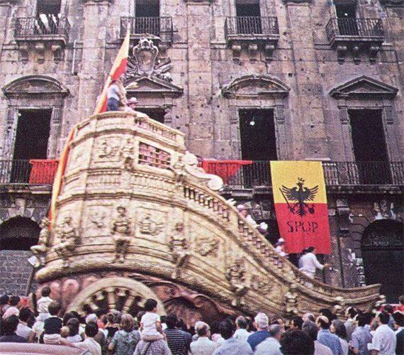 Nel 1974, ispirandosi ai disegni del 1700 dell’architetto Paolo Amato, venne costruito un carro a forma di vascello barocco, alto dieci metri e lungo nove. Da quel momento in poi, il carro stesso si è trasformato in un piccolo palcoscenico coreografico, ospitando diverse rappresentazioni durante la processione.