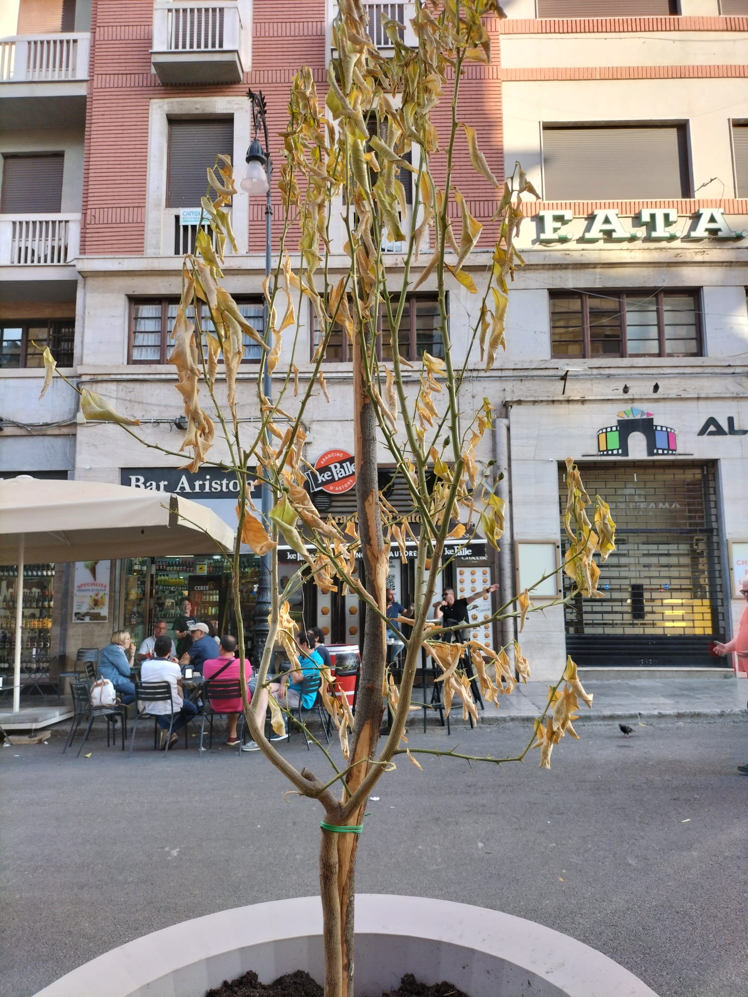 Ma se non metti l’acqua, si sa, la pianta appasisce. E così è avvenuto a qualche alberello posizionato in alcuni vasi nei pressi del teatro Politeama. A segnalarlo alla nostra redazione è un residente che, nella giornata di ieri, ha immortalato in un paio di scatti le foglie dell’arbusto appassite ed ingiallite. “In queste città si mettono le cose e poi si lasciano a sè stesse – dichiara S.M., residente della zona -. Se metti le piante, ci vuole qualcuno che gli metta l’acqua. E ancora non c’è il classico caldo torrido estivo. Il rischio che fra una ventina di giorni siano già appassite”.