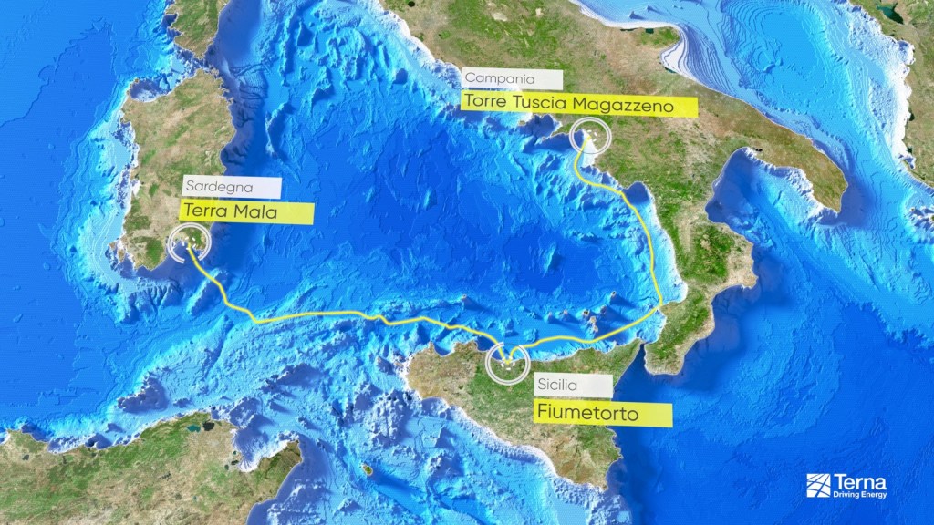 La nuova interconnessione è un progetto all’avanguardia che prevede la realizzazione di due linee elettriche sottomarine da 1000 MW ciascuna in corrente continua (una dalla Campania alla Sicilia e una dalla Sicilia alla Sardegna) per una lunghezza totale di circa 970 km e di collegamenti terrestri di circa 60 km. L’opera sarà a regime nella sua interezza nel 2028, ma il primo cavo – quello relativo al Ramo Est – sarà operativo già a partire dalla fine del 2025.