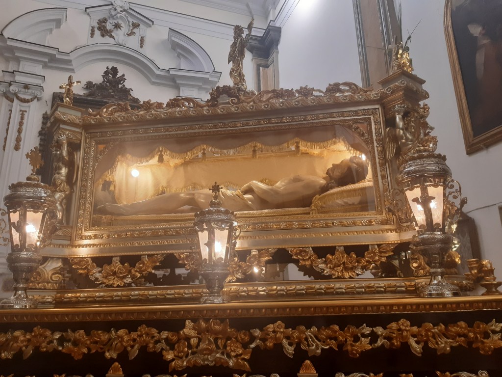 Alla parrocchia di San Nicola da Tolentino, in via Maqueda, le statue del Cristo Morto e della Madonna Addolorata della confraternita della Soledad – la cui fondazione risale al periodo della dominazione spagnola – sono state collocate da giorni vicino l’altare maggiore, esposte alla venerazione dei fedeli.