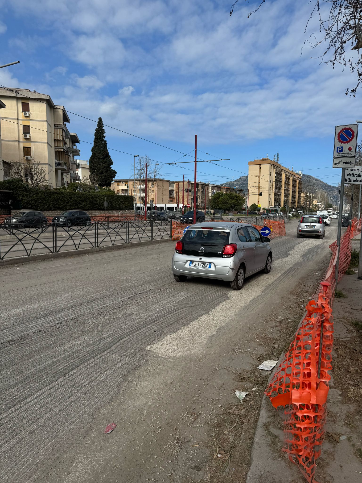 Da oltre due settimane, i lavori di ripristino del manto stradale in Viale Michelangelo sono in fase di stallo, lasciando la strada incompleta e causando gravi disagi ai residenti. Il continuo passaggio dei veicoli solleva una densa nube di polvere, rendendo l’aria irrespirabile e sollevando preoccupazioni per la salute pubblica.