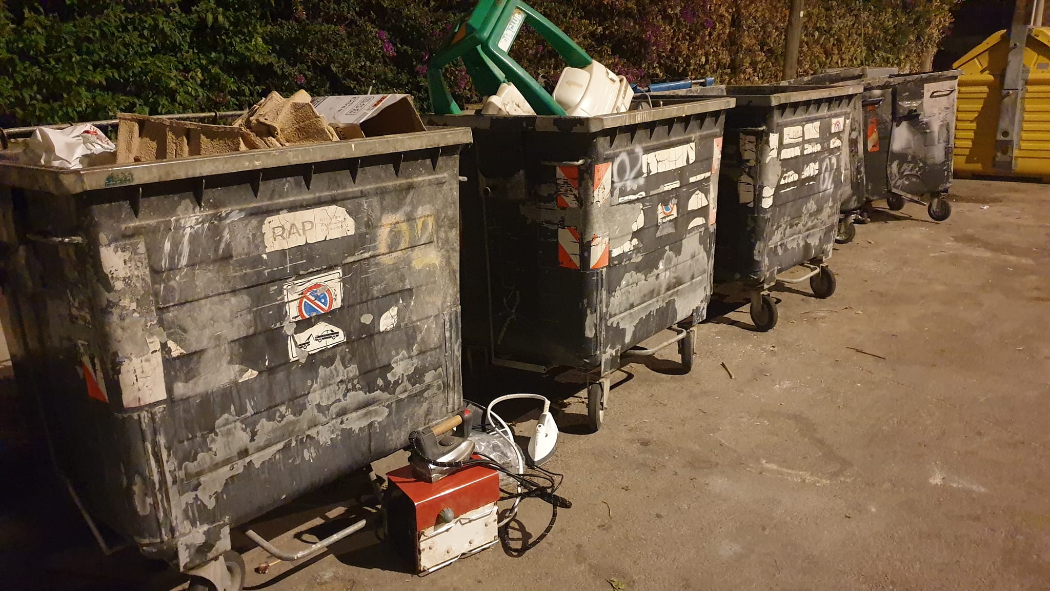 Oltre ai sovrappassaggi da urlo, la città di Palermo ospita mini salotti di rifiuti all’aria aperta: nei pressi di cassonetti vengono abbandonati rifiuti ingombranti che decorano le vie cittadine. Si tratta di materassi, frigoriferi, ferri da stiro e altri utensili casalinghi. Una vera e propria casa arredata segnalata più volte da residenti e cittadini senza alcun riscontro. Cestini stracolmi, piazze divenute discariche a cielo aperto e rifiuti ingombranti vengono indicati giornalmente dai cittadini in ogni angolo della città. Da piazzale Giotto a Sferracavallo la storia è sempre la stessa. L’emergenza rifiuti è ormai argomento caldo della città di Palermo ma attualmente, dalla periferia al centro, la presenza dei rifiuti risulta essere una costante, come dimostrano le immagini.