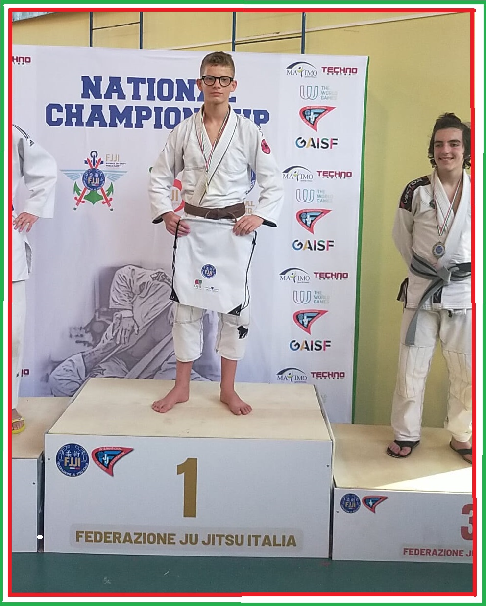 Francesco Parrinello sale sul gradino più alto del podio nel campionato italiano under 16 di ju jitsu nella categoria 55 kg. Il giovanissimo campione di Villabate ha vinto al Palasport di Gabicce Mare, in provincia di Pesaro, il suo nono titolo tricolore dopo aver vinto le eliminatorie ed altri quattro incontri di finale.