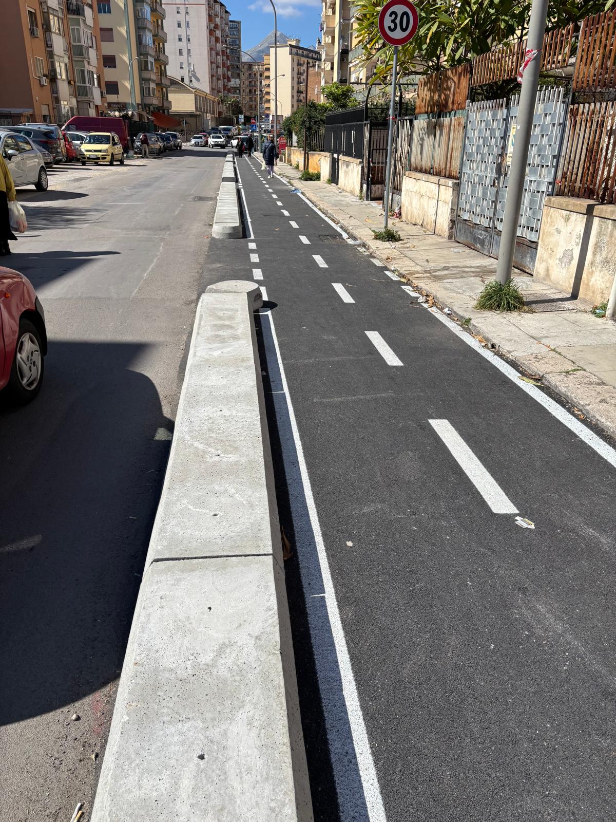 Andare per Palermo in bicicletta è un percorso ad ostacoli a cui devi essere preparato. Uno degli ultimi interventi (non ancora del tutto ultimato) ha riguardato il quartiere Villaggio Santa Rosalia a Palermo. La pista ha due corsie di marcia, alcuni tratti colorati in rosso ed è interamente delimitata dal cordolo in cemento per evitare intralci con gli automobilisti. Per un percorso complessivo di quasi un 1 chilometro, la ciclovia si estende da via Umberto Solarino ( passando per via Filippo Marini, via Franco Lucchini, via Giuseppe Li Bassi) a via Andrea Cesalpino. In buona sostanza: congiunge l’ospedale Civico al campus universitario di viale delle Scienze. Un’opera finanziata con i fondi Pnrr e che ha interessato anche altri quartieri cittadini.